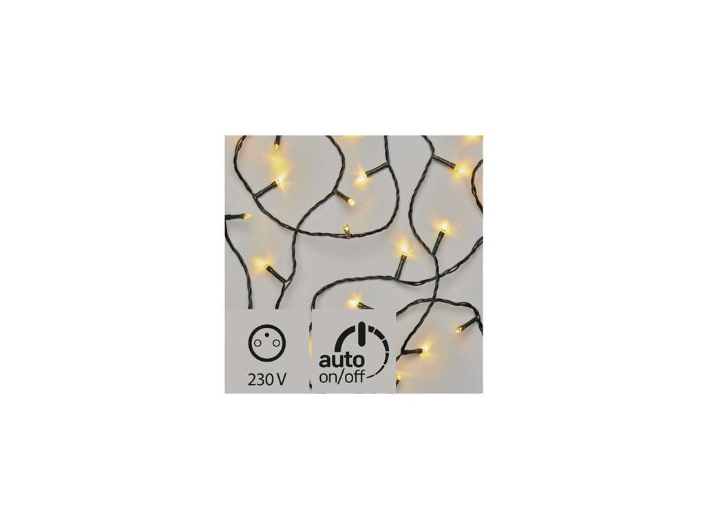 Tento světelný řetěz má na těle transformátoru (adaptéru) zabudovaný časovač. Funkce časovače znamená, že po prvním sepnutí bude řetěz svítit stále. Po druhém sepnutí (rozsvítí se zelené světlo) se nastaví časovač na dobu 6 hodin. Poté se automaticky vypne a bude po dobu 18 hodin vypnutý. V těchto intervalech (6 hodin zapnuto/18 hodin vypnuto) bude automaticky pracovat do té doby, dokud ho třetím sepnutím nevypnete.