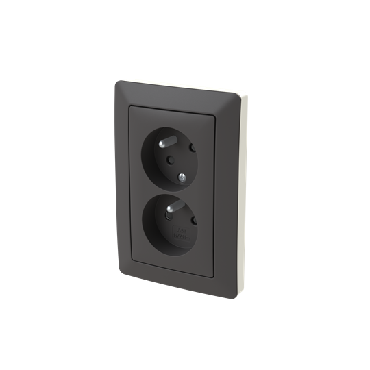 Zásuvka dvojnásobná s ochr. kolíky, s clonkami, s natočenou dutinou