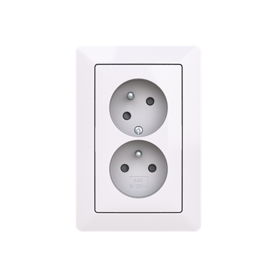 Zásuvka dvojnásobná s ochr. kolíky, s clonkami, s natočenou dutinou