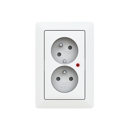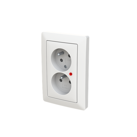 Zásuvka dvojnásobná, s clonkami, s natočenou dutinou, s ochranou před přepětím