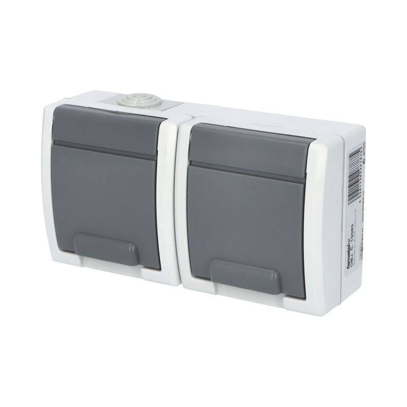 ATLAS IP55 Zásuvka 2x 2P+PE, 2-násobná vodorovná s ochr. kolíkem, šedá