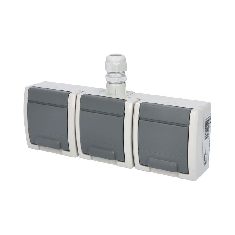 ATLAS IP65 Zásuvka 3x 2P+PE, 3-násobná vodorovná s vývodkou M20, na povrch, šedá