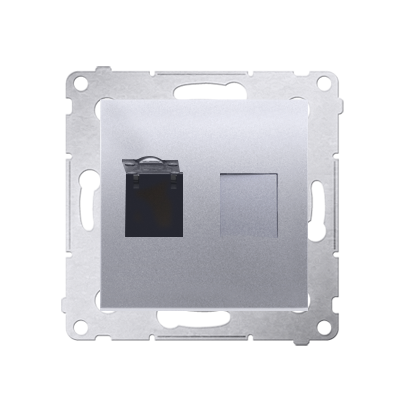 Zásuvka datová 1 násobná RJ45 6. kat. s protiprachovou clonou, (přístroj s krytem), stříbrná