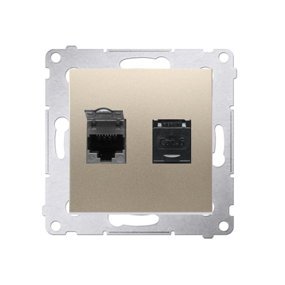 Zásuvka datová 2 násobná RJ45 kat. 6 s protiprachovou clonou, (přístroj s krytem), zlatá matná metalizovaná