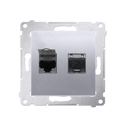 Zásuvka datová 2 násobná stíněná RJ45 kat. 6 s protiprachovou clonou, (přístroj s krytem), stříbrná