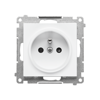 Zásuvka 1 násobná, se clonkami, přístroj s krytem, 16A, bezšroubové, bílá matná
