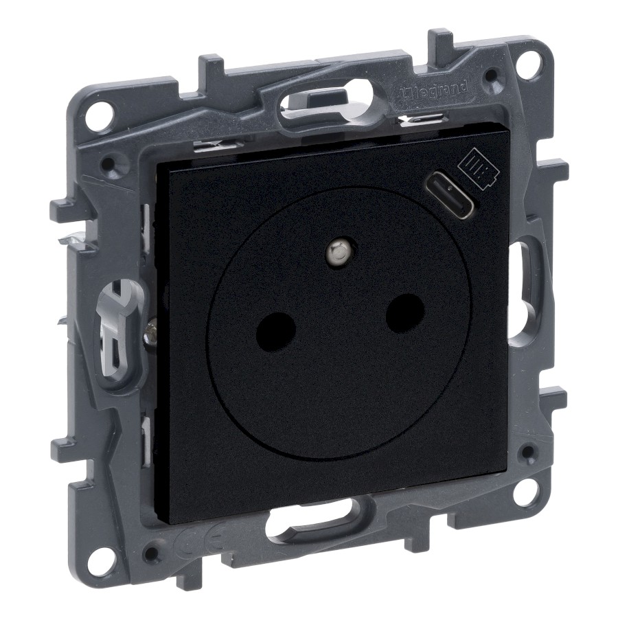 NILOÉ STEP ZÁSUVKA 2P+T/USB S CLONKAMI ČERNÁ