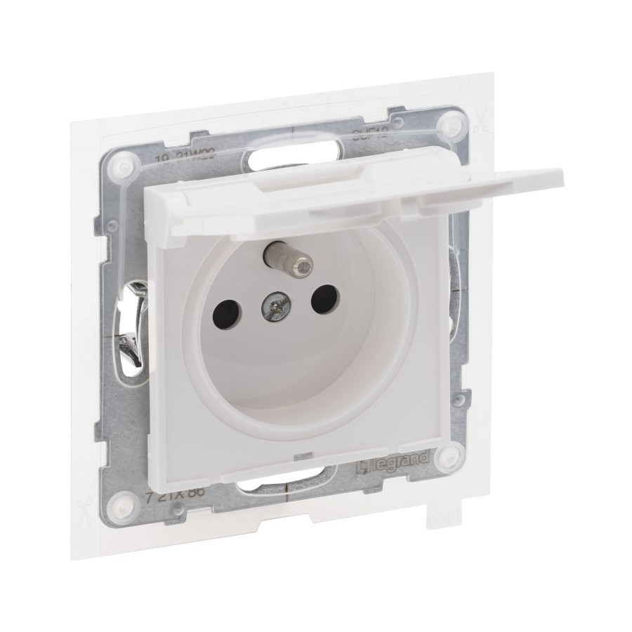 SUNO BÍLÁ ZÁSUVKA 2P+T S CLONKAMI A V KRYTÍ IP44