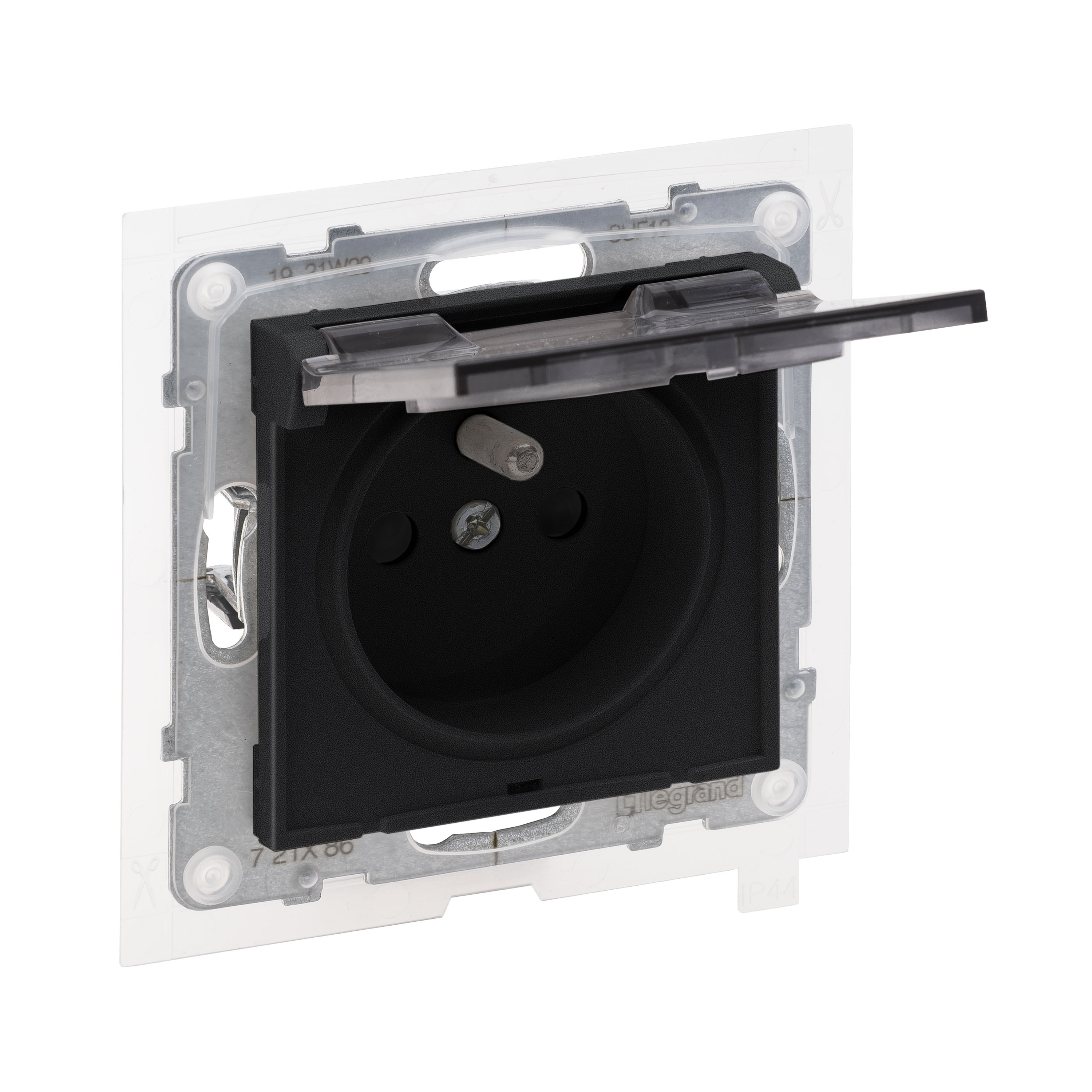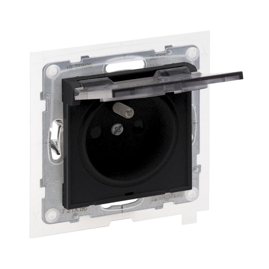 SUNO ČERNÁ ZÁSUVKA 2P+T S DĚTSKOU OCHRANOU, KLAPKA IP44