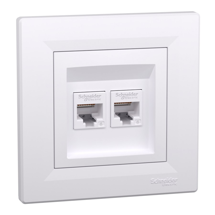Zásuvka datová, Asfora, 2xRJ45, kat.6 UTP, bílá