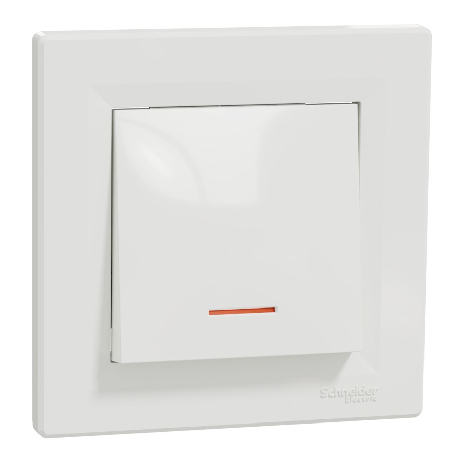 Spínač jednopólový, Asfora, orientační kontrolka, řazení 1So, bezšroubový, bílá