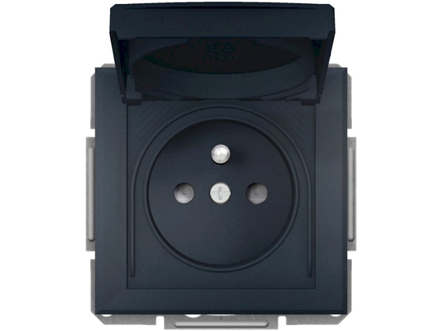 Zásuvka, Asfora, 2P+PE, 16A, clonky ,IP44, Antracit