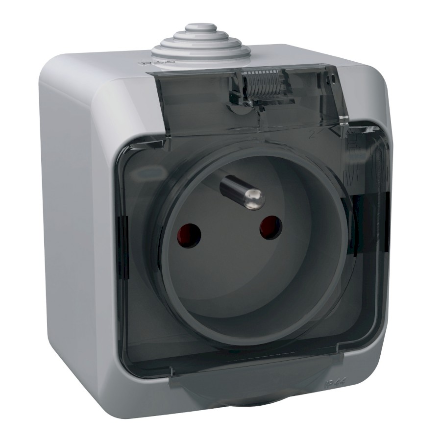 Cedar Plus IP44 - Zásuvka 230V 16A 2P+PE, šedá s čirým krytem