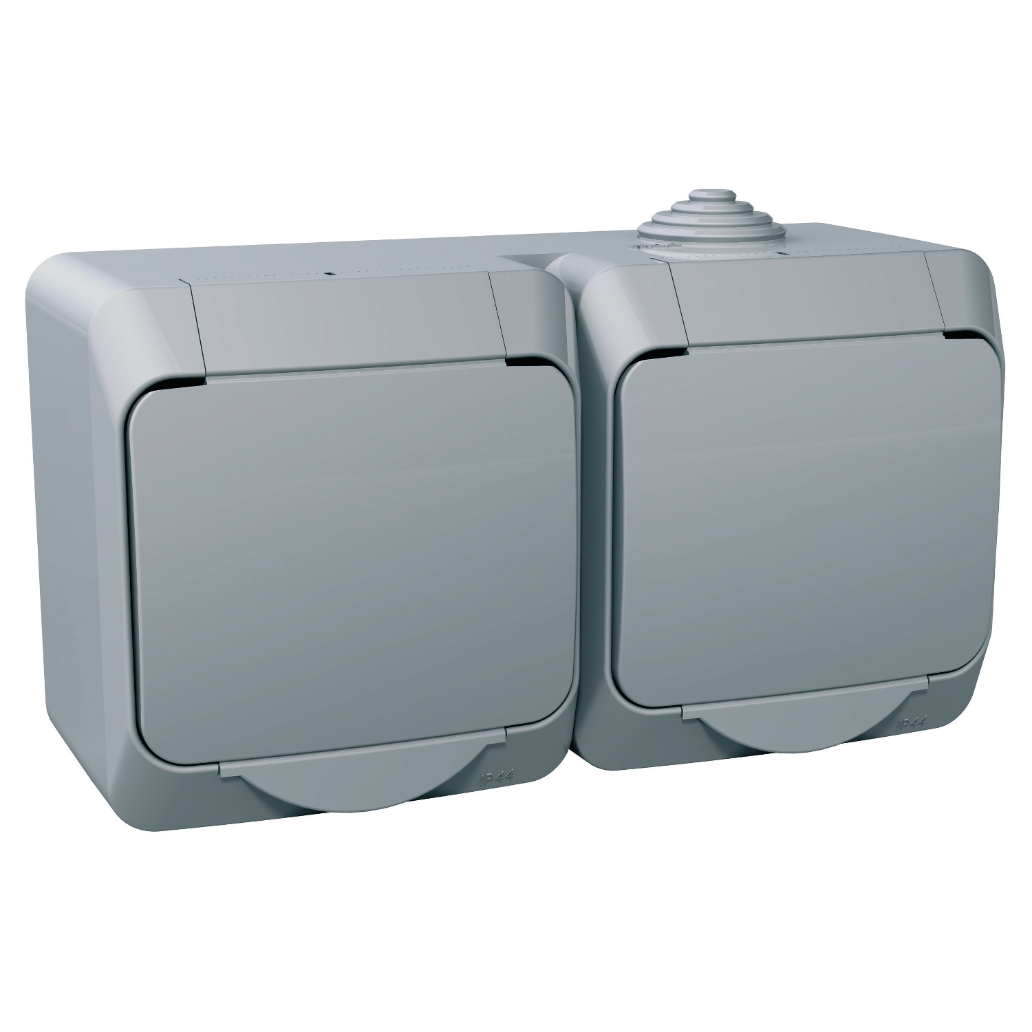 Cedar Plus IP44 - Zásuvka dvojnásobná 230V 16A 2P+PE, šedá