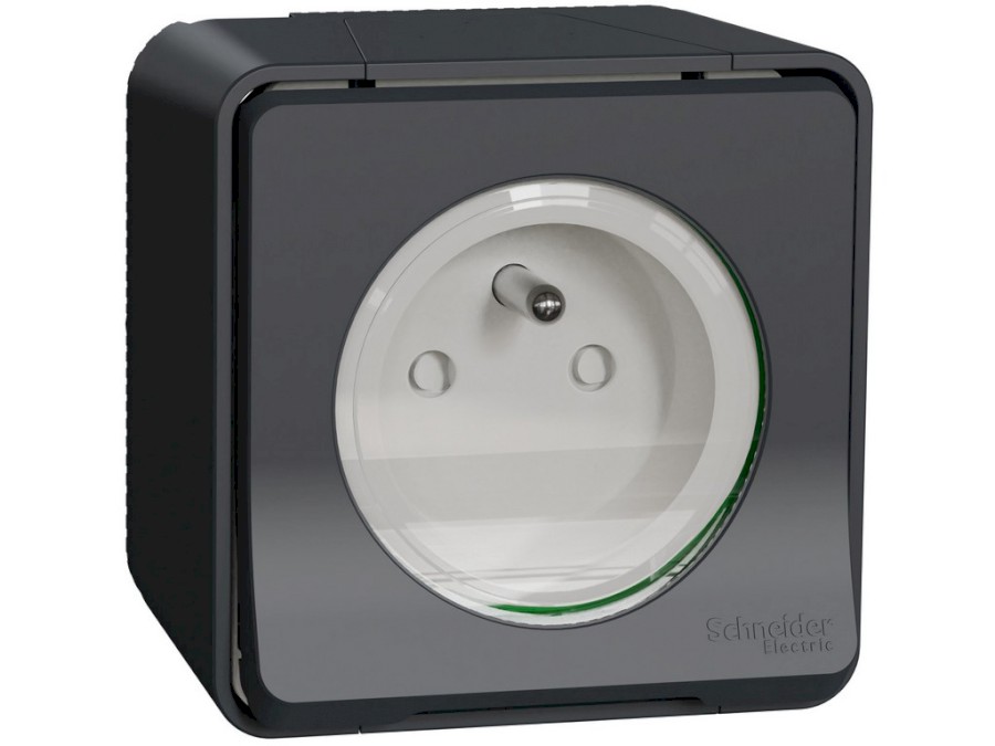 Mureva Styl - Kompletní zásuvka 16A 2P+E, clonky, šroubová, IP55, povrchová, Antracit