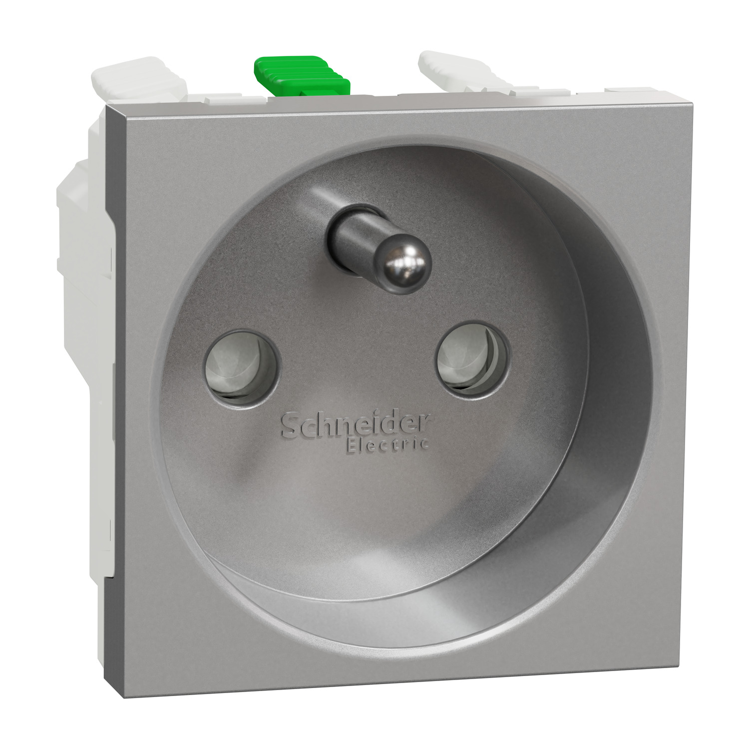 Unica - Zásuvka 250V/16A 2P+E, clonky, bezšroubová, Aluminium