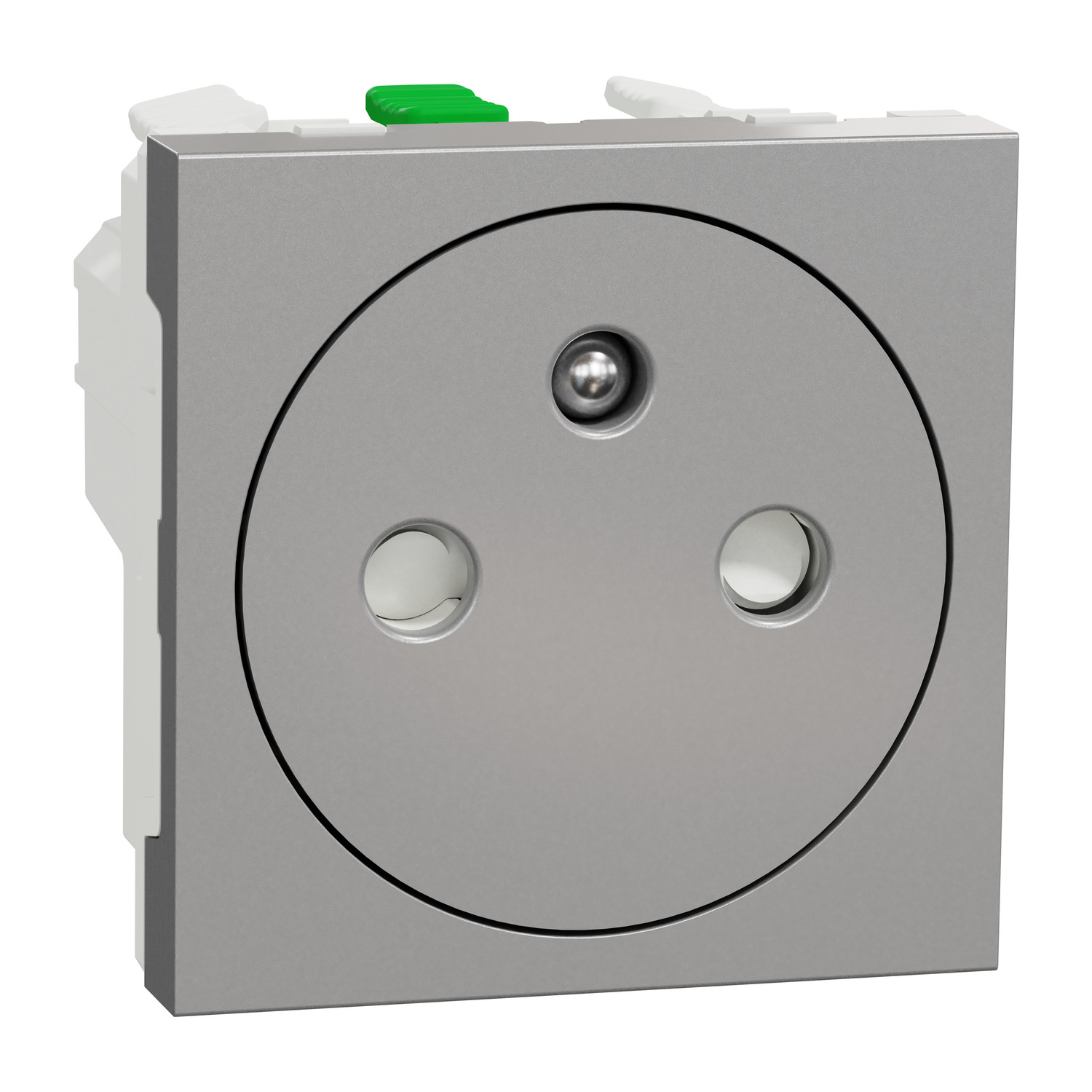 Unica - Zásuvka skrytá 250V/16A 2P+E, clonky, bezšroubová, Aluminium